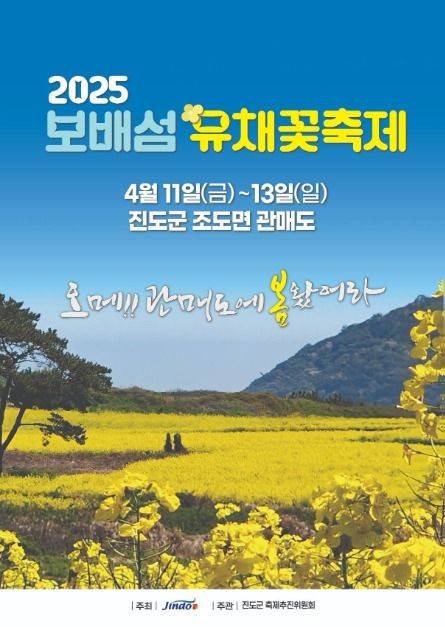 올해 보배섬 유채꽃 축제는 2025년 4월 11일부터 13일까지 단 3일간 열린다. 이전에는 진도군 곳곳에서 분산되어 진행되던 축제가 올해는 관매도 한 곳에 집중해 더 짙은 몰입감을 선사한다.