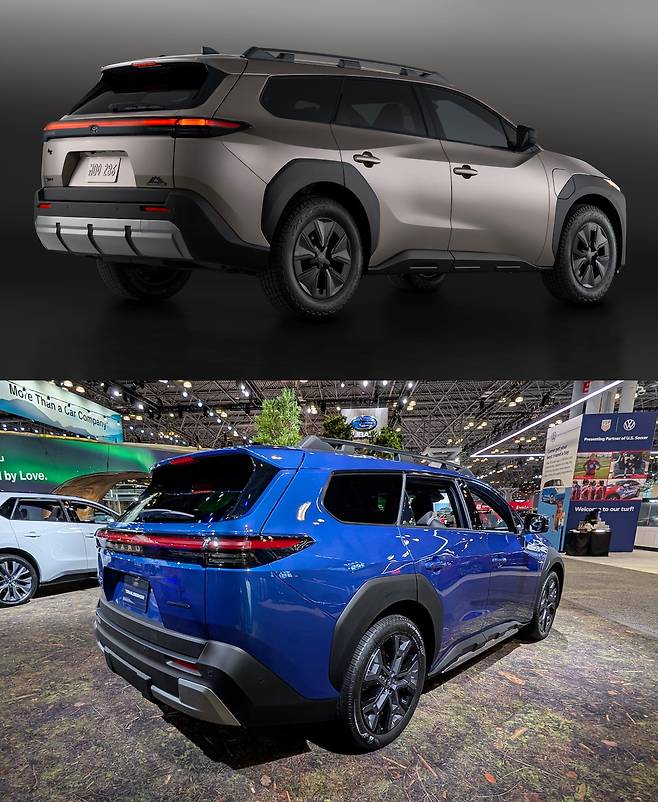 후면 디자인에서도 브랜드 차별화가 뚜렷하다. 토요타는 수평 라인으로 넓이를 강조하며 깔끔한 느낌을 주는 반면, 스바루는 3D 스바루 배지와 대비되는 플라스틱 '후크' 디자인으로 아웃도어 지향적인 모습을 표현했다.