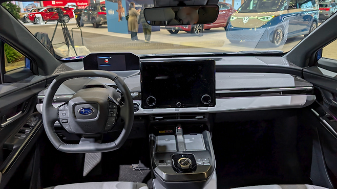 스바루 트레일시커는 대시보드의 금속 악센트로 스포티함을 더하며 기능성에 초점을 맞췄다. 계기판 시야를 가리지 않는 플랫한 스티어링 휠 디자인도 특징적이다.