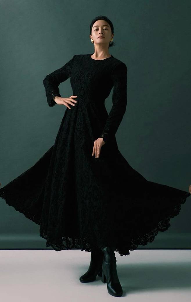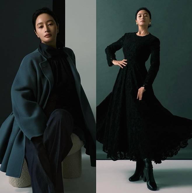 배우 김혜수가 발레리나처럼 우아한 포즈의 가을 페미닌룩으로 절정의 우아미를 뽐냈다.