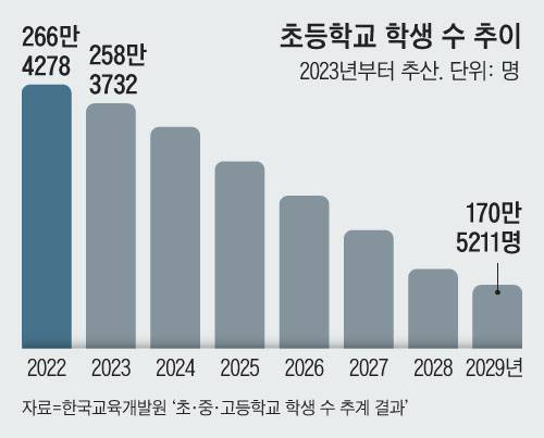 구체적으로 2022년 출생아(25만명)가 2~5살이 되는 2024년~2027년엔 어린이집과 유치원이 빠르게 줄어 통폐합할 가능성이 높다고 봅니다. 이런 양육시설 공동화가 이뤄지는 지역을 중심으로, 2029년과 2032년엔 각각 초등학교, 중학교 통폐합이 일어날 수 있습니다.