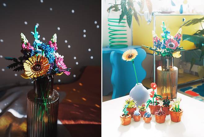 레고랜드에 놀러 갔다가 평소 궁금했던 레고 꽃다발을 구입했어요. 레고를 조립하는 건 어린이들만의 전유물이라 생각했는데, 실제 만들어보니 의외로 즐겁더라고요. 완성해 화병에 꽂아 두었더니 멋진 인테리어 소품이 됐고요. 어른들을 위한 레고 시리즈에 관심이 생겨 몇 가지 더 구매할까 해요. 레고 다육식물 시리즈는 선물 받은 것인데 주르륵 놓아두니 귀엽고 사랑스러워요.