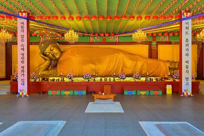 와불상 앞에 서면 화려함 속에서도 소박한 믿음이 이어져 내려오는 불교 문화의 맥락을 엿볼 수 있다.