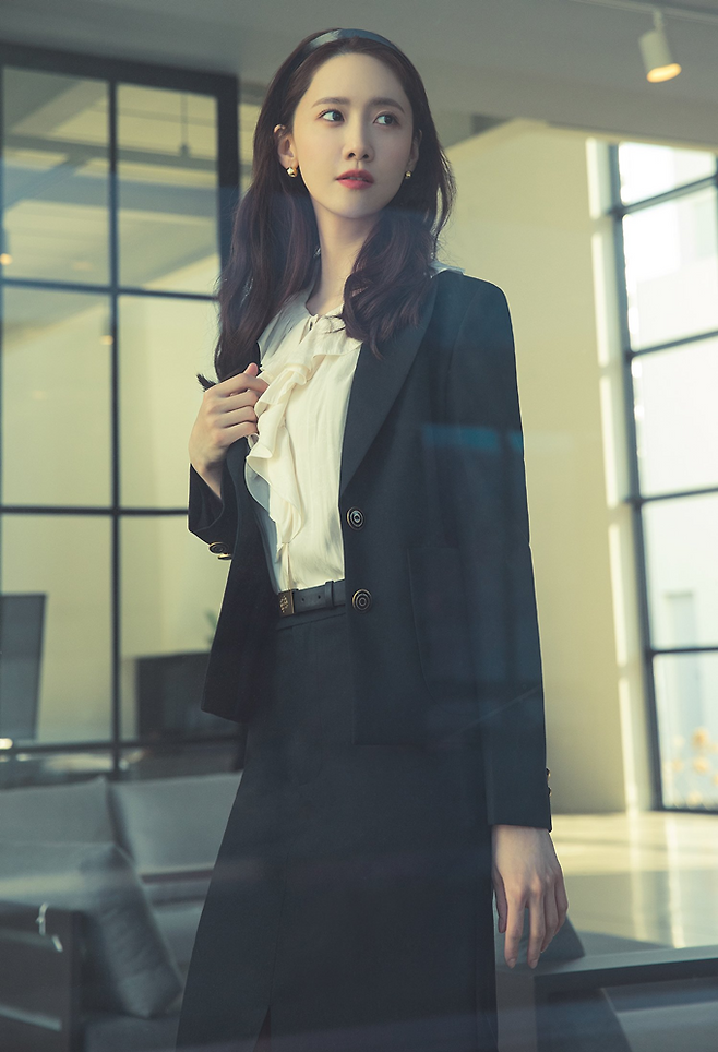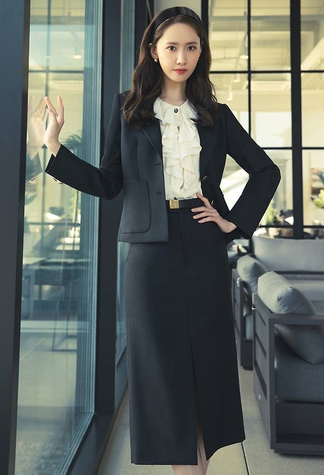 시스루 블라우스는 러플 디테일로 여성스러운 분위기를 연출하며 고우리는 '지고트'의 싱글 크롭트 재킷과 같은 소재의 세미 부츠컷 슬랙스로 세련된 슈트룩을 연출했다.