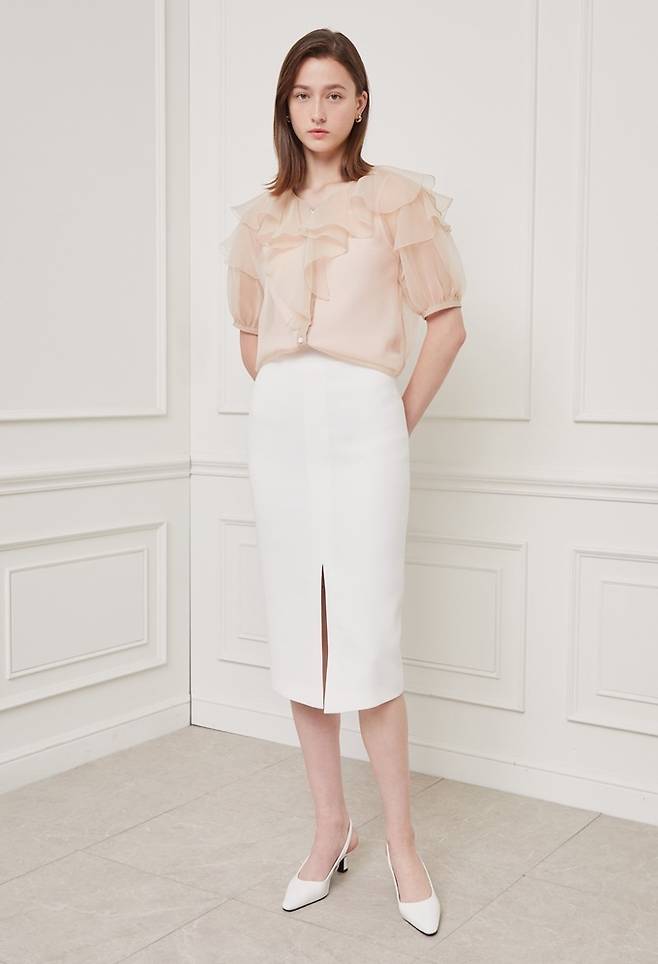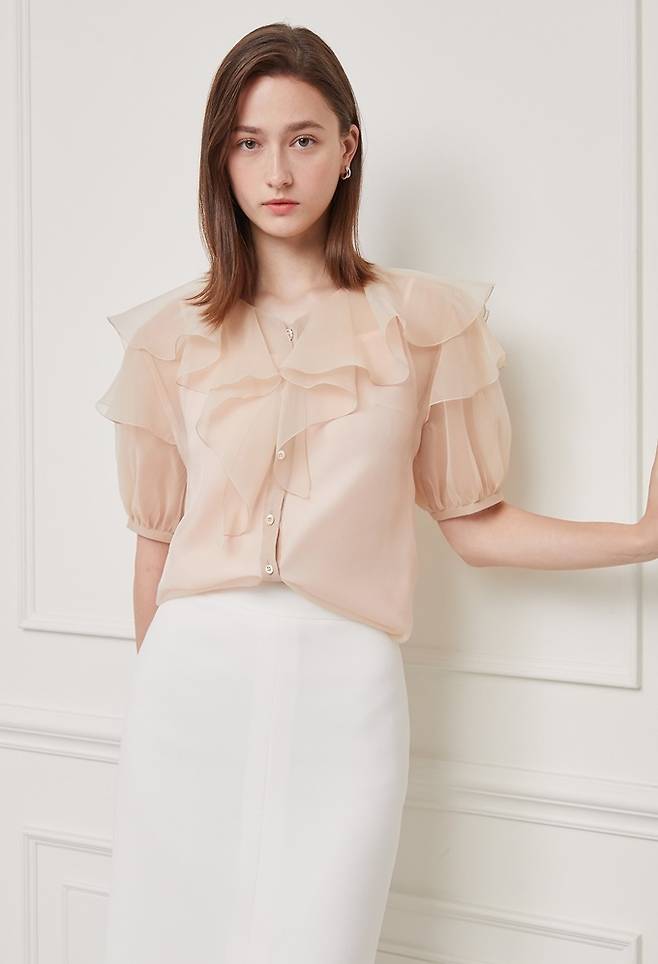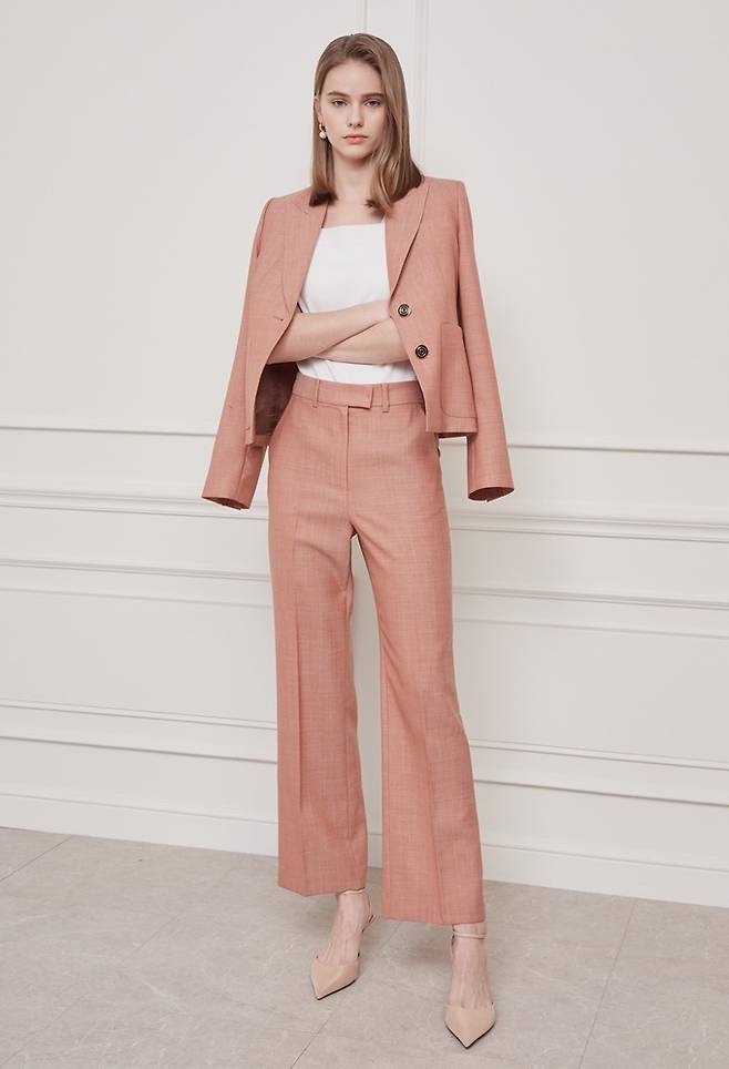 여성 캐릭터캐주얼 '지고트' 러플 블라우스, 싱크 크롭트 재킷, 세미 슬랙스로 연출한 오피스룩
