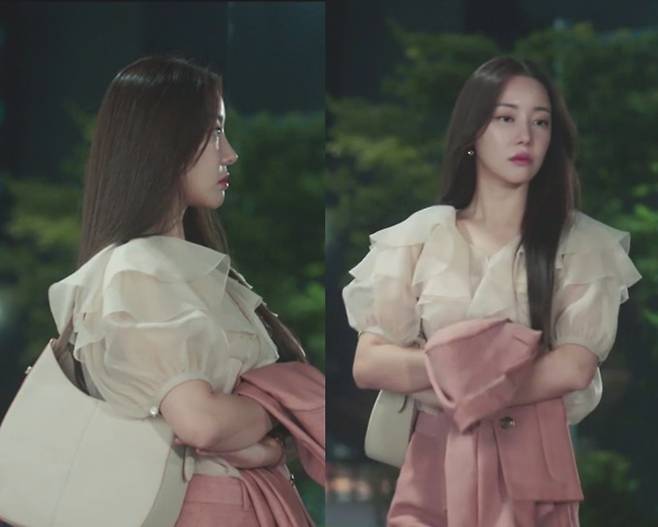 고우리는 재킷을 한손에 자연스럽게 들고 퇴근하며 여성스러우면서 자유분방한 파워우먼룩을 연출해 주목을 끌었다.