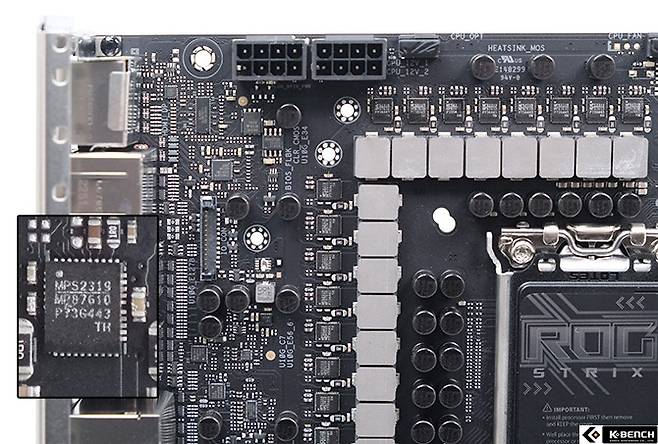14세대 코어 프로세서가 요구하는 높은 출력에 대응하면서 스위칭 부하로 발생하는 발열과 그로 인한 시스템 안정성 문제를 해결하기 위한 선택인데 막시무스 Z790 히어로가 20 페이즈에 90A MOSFET을 사용했으니 최대 출력 기준으론 이를 넘어선 것이다.