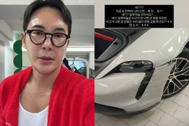 김우리가 공개한 사진 속 포르쉐 타이칸의 범퍼는 긁히고 틀어진 상태였다. 국산차라면 수십만원대에 수리가 가능한 손상이지만, 이 차량의 경우는 달랐다. 정비소 측은 “알루미늄 소재 특성상 수리가 불가능하다”며 전면 교체만이 유일한 해결책이라고 통보했다.