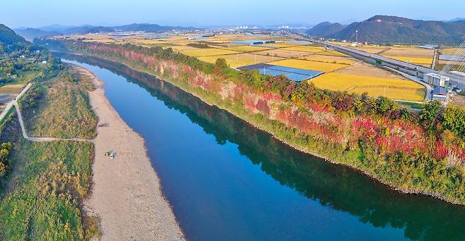 코스모스가 피는 계절에는 강변의 꽃과 암벽 식생이 어우러져 더욱 인상적인 풍경을 만든다.