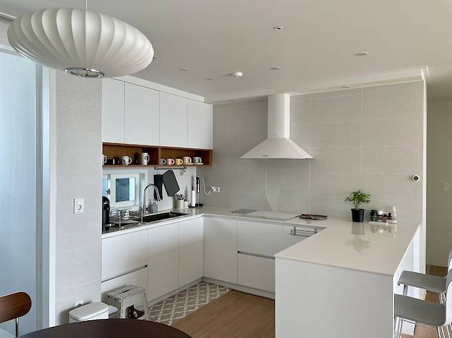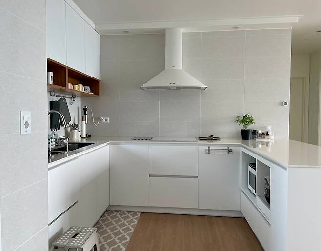 집에 오시는 손님들마다 후드 쪽 상부장을 없앤 걸 보시곤 잘했다 하시면서 수납은 부족하지 않은지 물어보시곤 합니다. 아직 2인 가족인데다 짐이 적은 편에 속해 부족함 없이 지내고 있습니다.