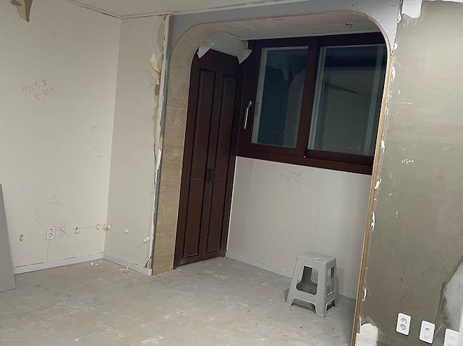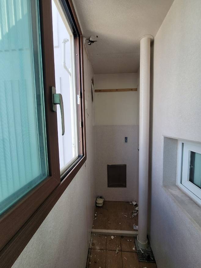 드레스룸 베란다 Before 사진입니다. 구축의 상징 화단이 있었는데, 인테리어 사장님께서 화단 덮개라도 해드릴까요? 라고 물어보셨지만 아무것도 하지 말아주세요~라고 답했던 곳입니다.
