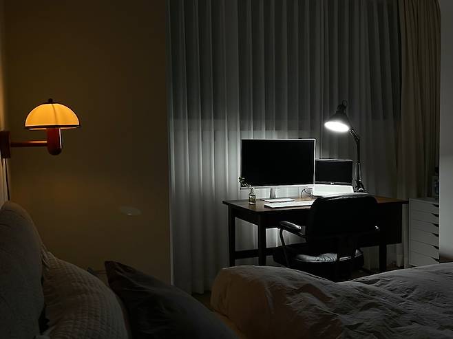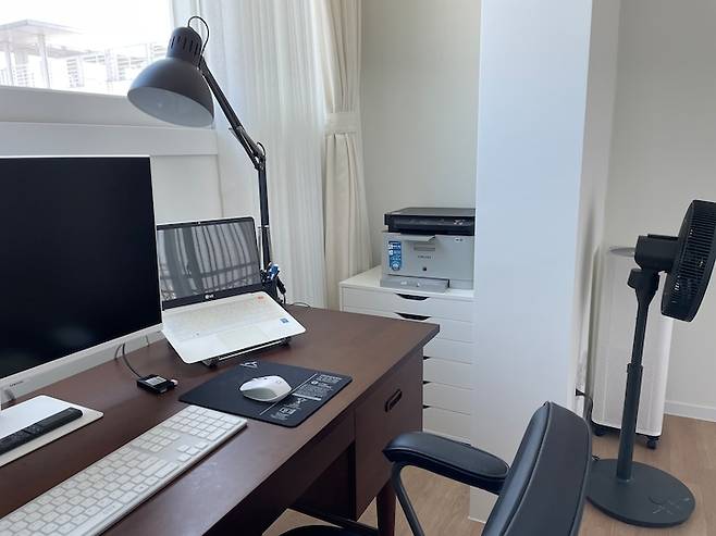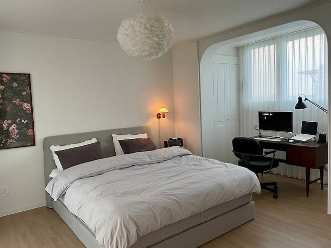 서재가 있었을 땐 겨울엔 춥다고 여름엔 덥다고 잘 이용하지 않아 서재의 활용도가 떨어졌습니다. 이번 집에서는 서재를 만들지 않고 안방 여유 공간에 책상을 두기로 했습니다. 퇴근 후 잠깐씩 컴퓨터 작업을 하는 남편은 아주 만족해 하고 있습니다.