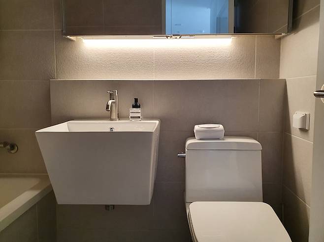 안방 욕실과 공용 욕실의 세면대, 변기는 모두 대림 바스 제품입니다.