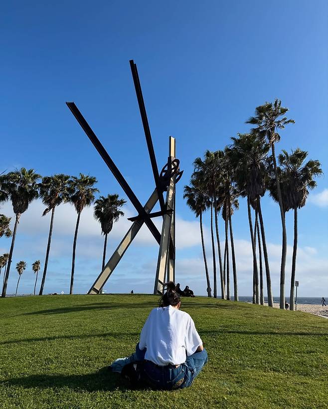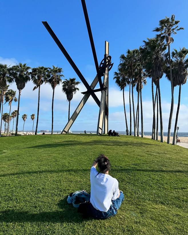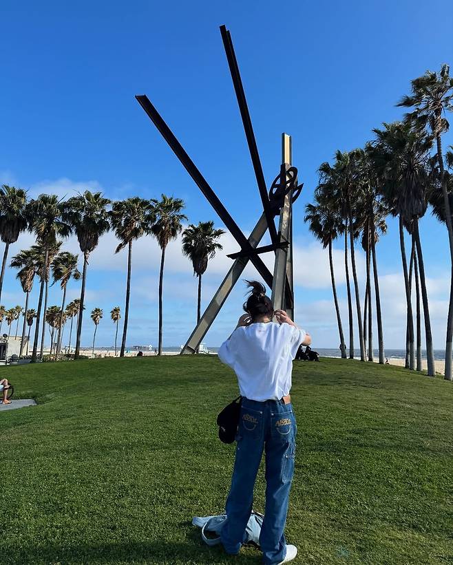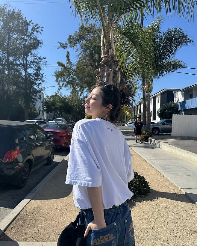 지연이 싱그러운 캘리포니아 햇살 아래 자유로운 에너지를 한껏 발산했다. 최근 공개된 사진 속 지연은 미국 로스앤젤레스의 햄버거집에서
