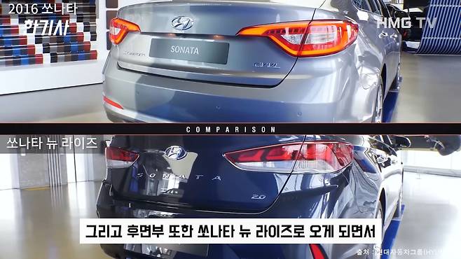쏘나타 뉴 라이즈 오게 되면서 후면부 디자인의 변화가 좀 크게 바뀌었습니다. 그나마 디자인적인 부분에서 마음에 드는 건 후면부의 테일램프입니다. 개인적인 생각이기는 하지만 이 차량 테일램프 람보르기니 아벤타도르 닮았다고 생각하는데, 이렇게 생각하면서 이 차량의 디자인적인 위안을 얻고 있습니다.