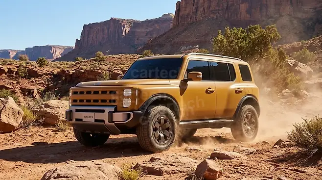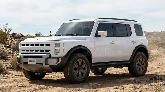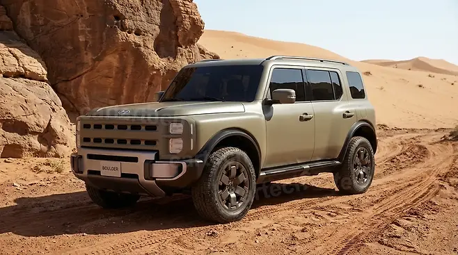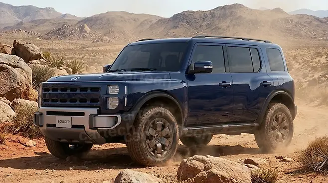 이번에 공개된 새로운 양산형 예상도는 전통적인 오프로더의 강인한 실루엣을 현대적인 조형 언어로 재해석한 결과물이다. 차체 전반을 지배하는 직선적인 라인과 박스형 비례감은 시각적인 안정감과 함께 압도적인 존재감을 부여한다. 장식적인 요소를 철저히 배제하고 순수한 볼륨감에 집중한 표면 처리는 기능주의적 디자인의 정수를 보여준다.