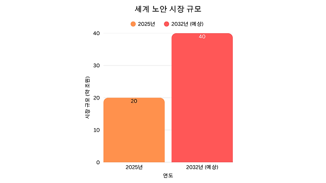 -2032년 약 40조 원 규모로 성장할 노안 시장에서 안경·수술 대비 간편성과 가격 경쟁력으로 40~60대에 매력적인 대안이 될 전망이야.
