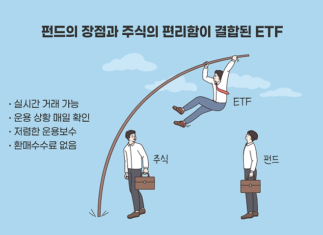 이렇게 펀드와 주식의 장점을 모아서 만든 ETF는 이외에도 좋은 점이 많이 있는데요. 대표적인 장점 3가지를 정리해서 말씀드리겠습니다.