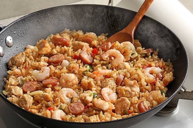 '잠발라야' 맛은 열량은 355kcal로, 해산물, 소시지, 닭가슴살이 이국적인 조화를 이룬 케이준 요리예요.