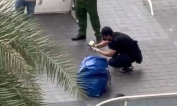 현지 아파트 경비원과 행인들이 가방에서 나는 심한 악취 때문에 경찰에 신고했고, 이 과정에서 용의자들이 황급히 도주하는 모습이 포착되었어요.