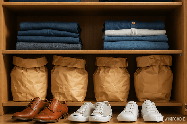 종이봉투의 가장 큰 특징은 다공성 구조다. 육안으로는 보이지 않지만 작은 구멍이 있어 습기와 냄새를 빨아들이는 성질이 있다. 이 특성은 신발장과 옷장에서 큰 효과를 발휘한다. 신발장은 환기가 잘되지 않고, 신발 속 땀 냄새와 습기가 뒤섞이면서 특유의 퀴퀴한 냄새가 난다.