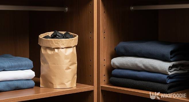 숯을 함께 넣는 것도 좋은 방법이다. 숯은 미세한 구멍이 많아 냄새와 습기를 빨아들이는 성질이 있다. 종이봉투에 숯 조각을 넣어 옷장 구석에 두면 곰팡이를 방지하고 은은한 탈취 효과도 난다. 커피 찌꺼기를 종이봉투에 담아 방향제로 쓸수도 있다.