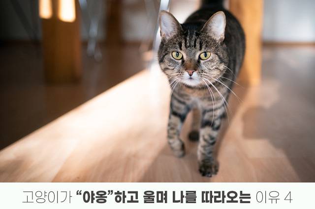 외출 직전 고양이가 울기 시작한다면, “나 외롭고 불안해”라는 신호이다. 왠지 슬프게 느껴지는 울음소리를 내기도 하고 때로는 외출하는 집사를 막아보려는 듯 유난히 더 크고 강하게 울기도 한다.