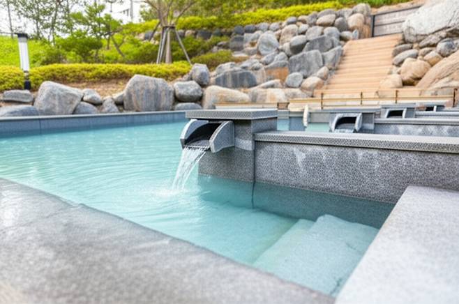 2. 온도 확인: 족욕탕의 온도는 40~43℃ 정도로 유지되며, 뜨겁게 느껴질 경우 찬물을 섞어 온도를 조절합니다.