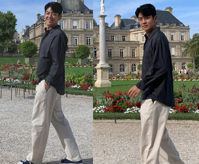 이용대는 블랙 셔츠에 베이지 팬츠를 매치해 심플하면서도 세련된 일상룩을 선보였습니다. 데일리한 검정색 스니커즈를 착용해 편안하면서도 깔끔한 스타일을 완성한 그는, 여전히 스타일리시한 모습을 자랑했습니다.