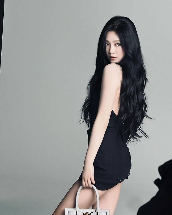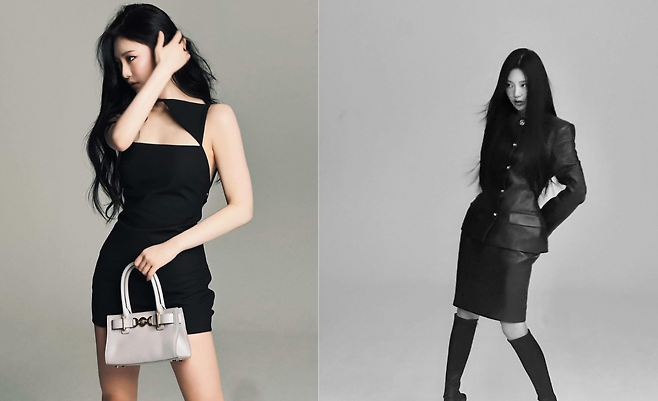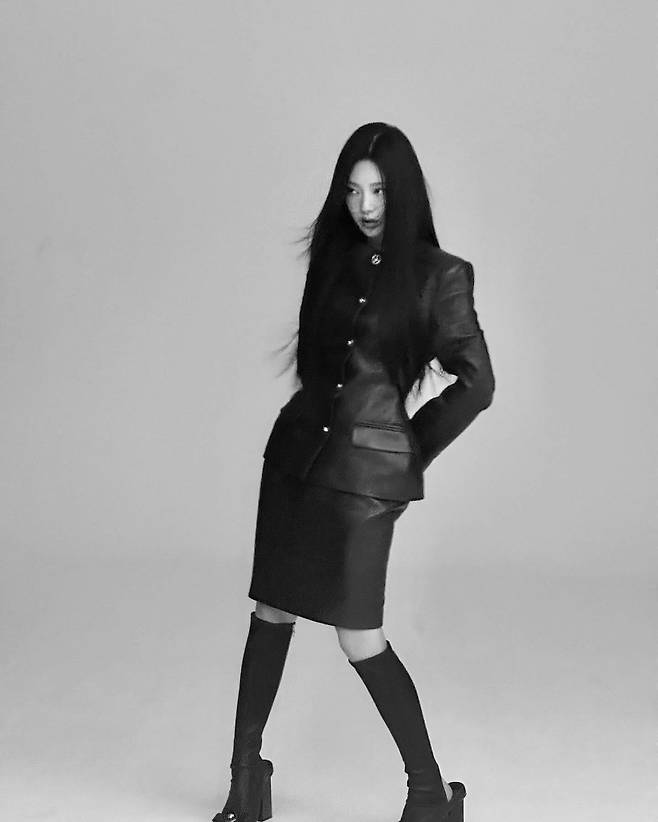사진 속 닝닝은 블랙 탑 미니 원피스를 입고 섹시미를 선보였다. 또 다른 사진에서는 와인빛 가죽 자켓과 치마 셋업을 입고 시크한 분위기를 연출했다.
