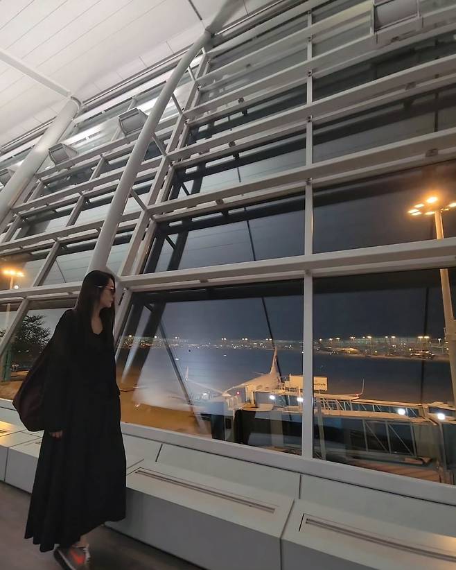 공항에서 포착된 윤지민은 블랙 롱 드레스를 선택해 모던하면서도 시크한 분위기를 연출했다. 드레스의 루즈한 실루엣은 편안함과 스타일리시함을 동시에 담아냈으며, 어깨에 걸친 블랙 백팩은 실용성과 패션성을 겸비한 선택이었다. 전체적으로 절제된 모노톤 스타일이 그녀의 세련된 감각을 돋보이게 했다.