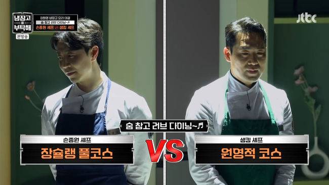 이날 장원영의 냉장고 재료로 '숨 참고 러브 다이닝' 샘킴, 손종원이 대결을 펼쳤다. 김성주는 "샘킴이 손종원 내가 발라버리겠다고 했다더라"라고 물었다. 이에 샘킴은 "했다. 했어"라며 "냉부가 벽이 높다라는 걸 알려드리고 싶었다"라고 말했다. 손종원은 "장슐랭의 별을 받아가겠다"라며 포부를 전했다.