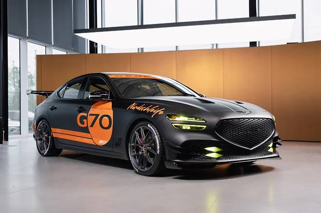 콘셉트카는 또한 오리지널 오렌지색 트랙 택시에 경의를 표하는 인상적인 리버리(도색)를 자랑하며, G70의 고성능 잠재력에 대한 새로운 해석을 제공한다.