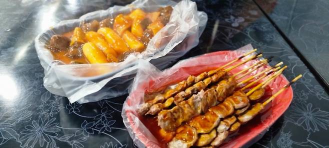 초등학교 앞 분식집 추억의 염통 꼬치. 노릇노릇 구워낸 염통에 매콤달콤한 소스를 발라 먹는 가성비 간식이다. 순한맛, 약간 매운맛, 매운맛 3가지 맛 주문 가능.