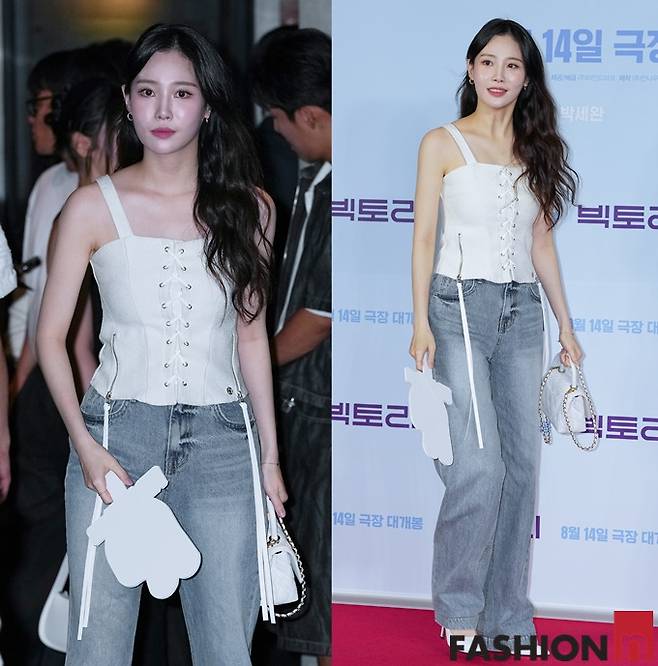 그룹 걸스데이의 가수 겸 배우 유라가 유니크한 끈 패션 시사회룩으로 혜리를 응원했다.
