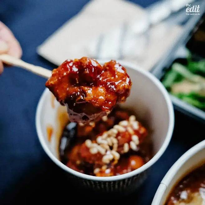 에디터: “매콤달콤한 소스, 감칠맛, 양… 닭강정이 가져야 할 모든 요소를 가지고 있다.”
