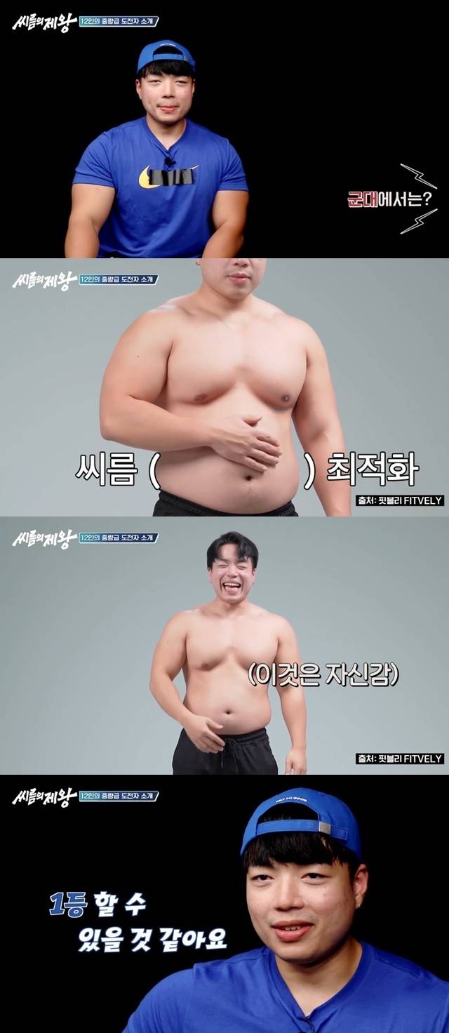 핏블리는 “제 체중이 씨름에 적합하다. 많이 늘었다. 자신 있다. 1등할 수 있을 것 같다. 공중에 3초. 슬로우 모션 걸어 달라. 공중에 3초 뜰 거다”고 자신감을 드러냈다. (사진=tvN STORY ‘씨름의 제왕’ 캡처)