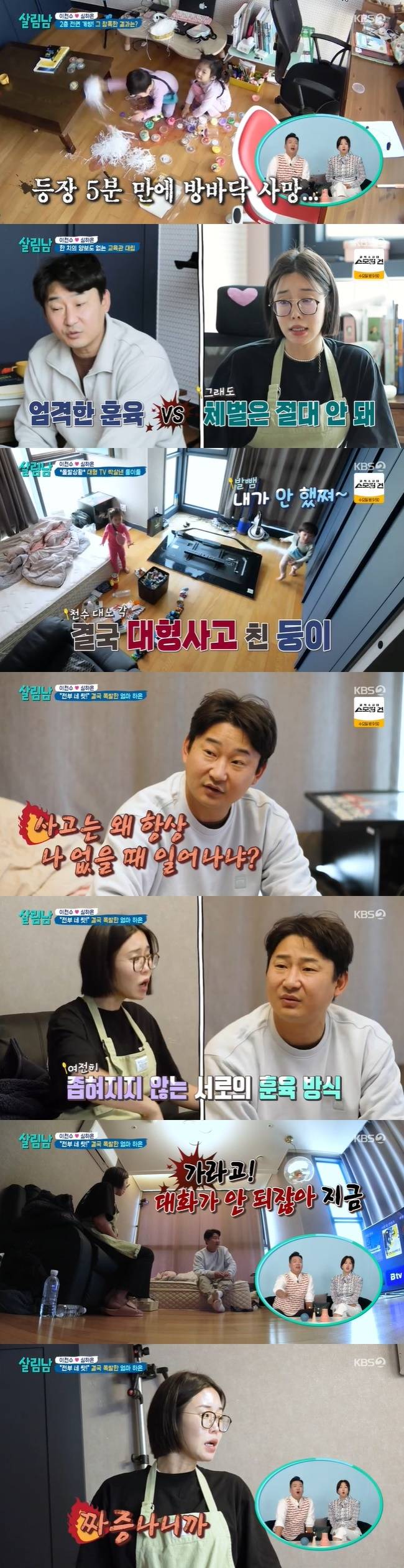 4월 1일 방송된 KBS 2TV ‘살림하는 남자들 시즌2’에서는 이천수, 심하은 부부가 쌍둥이들 훈육 때문에 언성을 높였다.