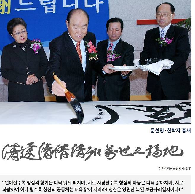 귀족학교 지적을 받는 청심국제중고의 홈페이지에도 학교법인 소개 란에 '문선명·한학자 총재' 사진을 크게 걸어놓은 뒤 문선명 총재의 다음과 같은 어록을 적어놓았다.