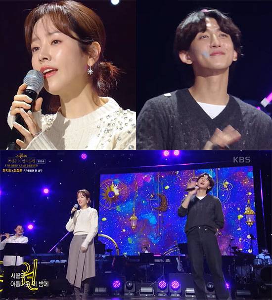 당시 한지민과 최정훈은은 한지민이 출연한 드라마 '우리들의 블루스' OST인 '봄 to 러브'와 잔나비의 '가을 밤에 든 생각'을 듀엣으로 열창한 바 있다.