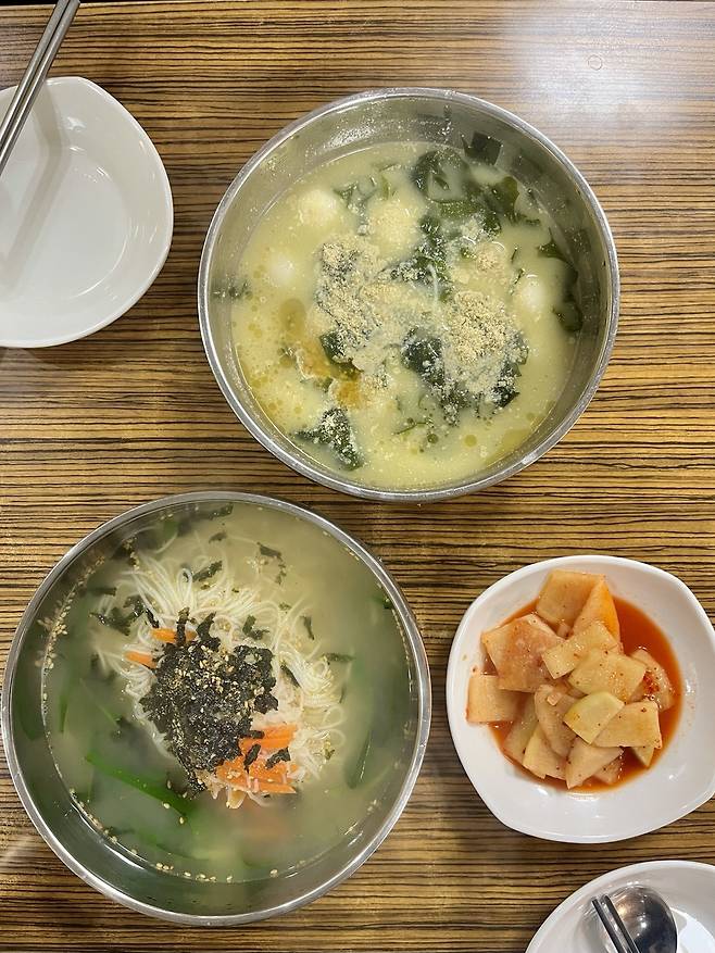 점심은 중앙시장 안쪽에 자리 잡은 '중앙분식'에 갔어요! 허영만의 백반기행에 나온 경주 맛집이라고.😋 분식집이라고 해서 떡튀순과 김밥 등을 생각했었는데 메뉴는 칼국수, 수제비, 잔치국수, 찹쌀 수제비뿐이었어요.🍜 찹쌀 수제비가 인기라고 하셔서 주문했는데요. 들깨 미역국에 찹쌀 새알이 동동 띄워져 있더라고요. 쫀득쫀득한 찹쌀 새알에 고소한 들깨향이 어우러져 진짜 맛있었다는.🫢 서울에서는 쉽게 먹어볼 수 있는 조합이 아니라서 더 좋았어요! 잔치국수도 깔끔한 멸치 육수에 부드러운 면발이 담겨 있어서 호로록 먹었어요!
