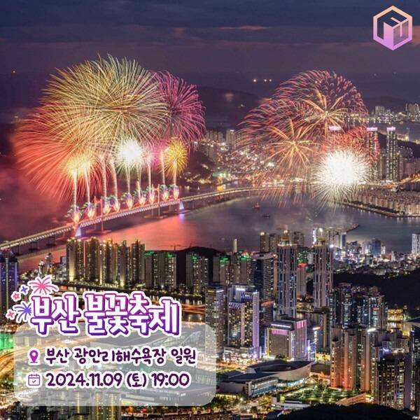 전국 3대 불꽃축제로 손꼽히는 2024 부산 불꽃축제입니다. 2024 부산 불꽃축제는 11월 9일 토요일 오후 7시부터 광안리해수욕장 일원에서 진행될 예정인데요. 광안대교의 조명으로 낭만적인 분위기가 가득한 해변가에서 어마어마한 규모의 불꽃공연이 매년 수많은 관람객들의 발걸음을 사로잡고 있습니다.
