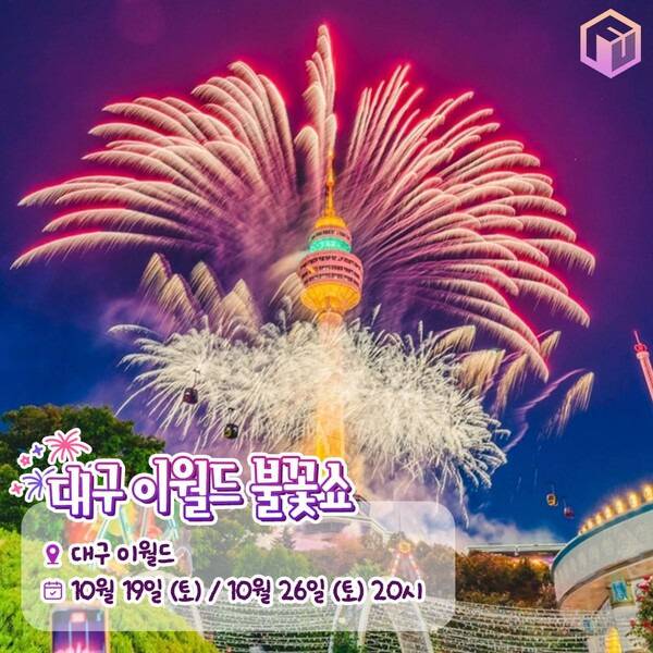 가을을 맞이해 경상권을 대표하는 테마파크 대구 이월드에서도 2024 불꽃축제를 진행합니다. 10월 한 달간 단 2차례의 불꽃쇼만 진행하는데, 남은 일정은 10월 26일 토요일 오후 8시입니다. 대규모로 진행되는 2024 불꽃쇼인만큼 이월드 파크 전역에서 황홀한 불꽃공연을 감상할 수 있습니다.