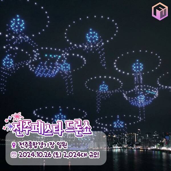 전주의 대표 축제들을 한 자리에서 만나볼 수 있는 2024 전주페스타가 10월 한 달간 전주종합경기장 일원에서 개최되고 있습니다. 축제의 마지막 날인 10월 26일 일요일 오후 7시부터 '클로징축제'와 함께 무려 2,024대의 드론이 공연을 펼칠 예정인데요.