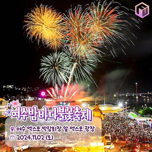 2024 여수밤바다 불꽃축제는 11월 2일 토요일 여수 세계박람회장 앞 해상에서 진행됩니다. 불꽃 본 공연 전인 오후 7시부터는 음악 공연과 버스킹 공연이 이어져 축제의 흥겨운 분위기를 형성합니다. 불꽃쇼가 끝나고 집에 돌아가기 아쉽다면, 불꽃공연 이후 40분간 이어지는 여수시립예술단의 공연을 감상하며 여운을 이어나가보시길 바랍니다.