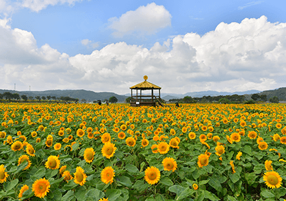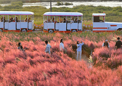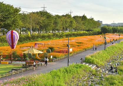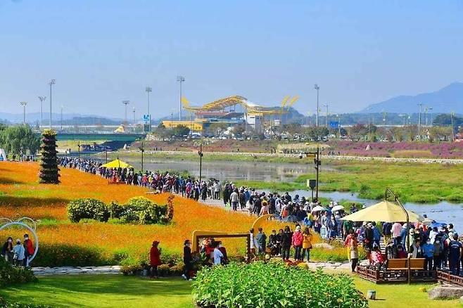 황룡강 일대에는 백일홍, 천일홍, 해바라기, 코스모스 등 100억 송이가 넘는 가을꽃이 만개해 거대한 꽃강을 이루며 방문객을 맞이합니다.