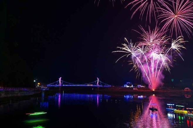 낮에는 꽃길, 밤에는 빛의 강으로 변신합니다. 플라워터널과 용작교 일대에는 환상적인 경관 조명이 켜지고, 황룡강 야외무대 주변은 화려한 불빛으로 물듭니다.