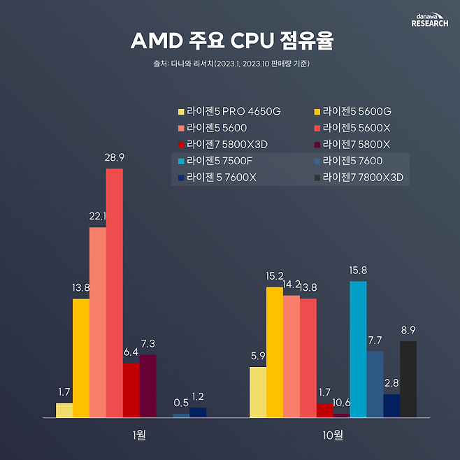 ■ AMD 5세대 CPU 점유율 (다나와 리서치 2023.10 판매량 기준)