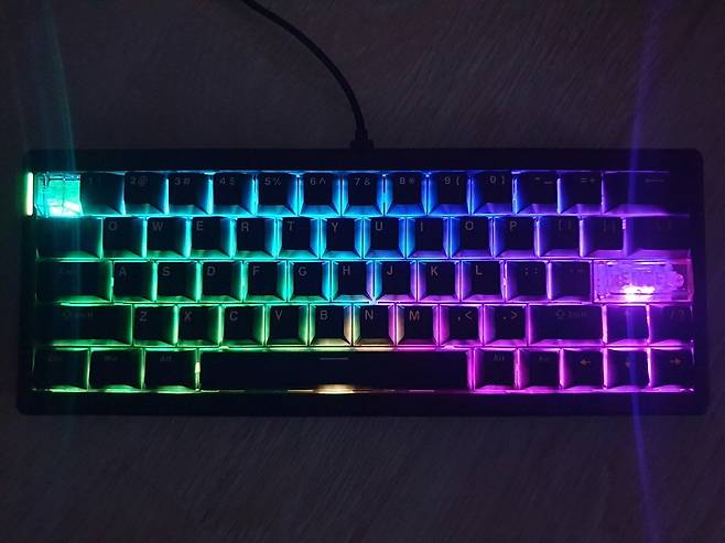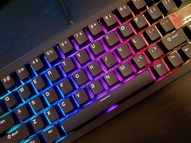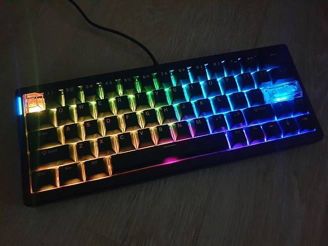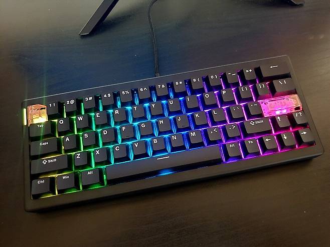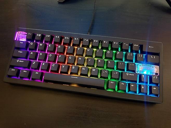 - 방향키 포함한 컴팩트한 64키 미니 배열 디자인으로 공간 효율성 좋음