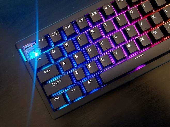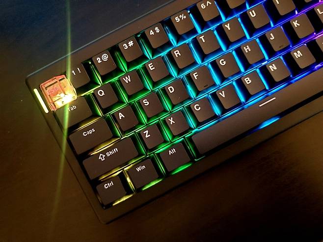 ESC키 바로 왼쪽에는 세로로 된 LED 라인이 보입니다.